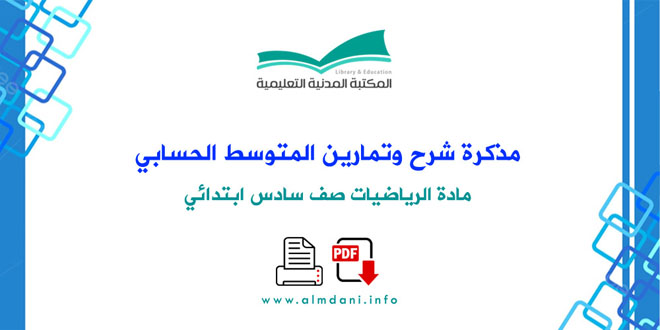 مذكرة شرح وتمارين المتوسط الحسابي مادة الرياضيات صف سادس ابتدائي