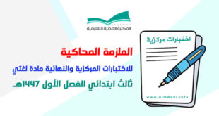 - نموذج اختبار مركزي مادة لغتي سادس ابتدائي مع الإجابات لعام 1445هـ